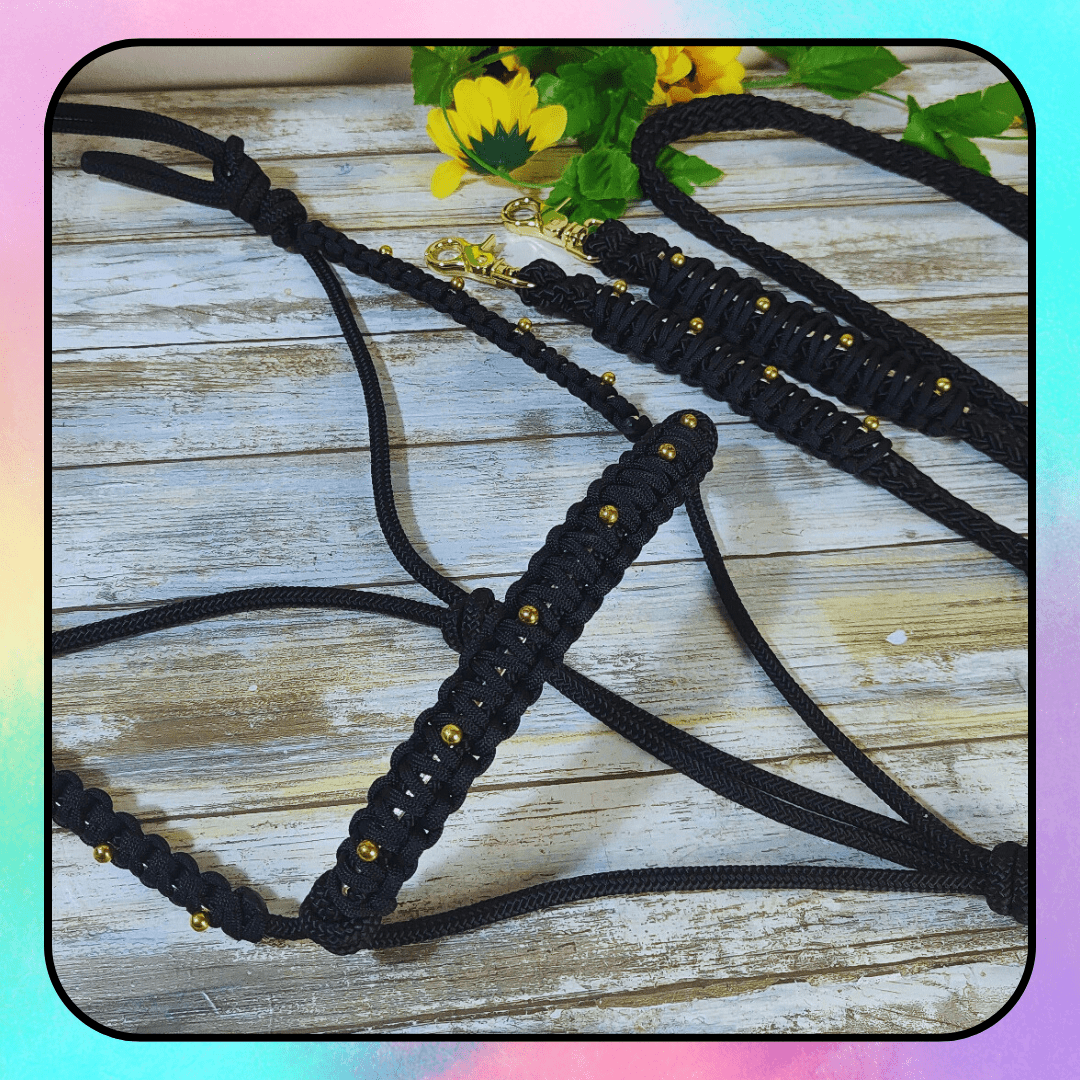 Licol et rênes en noir et doré, modèle UNIQUE