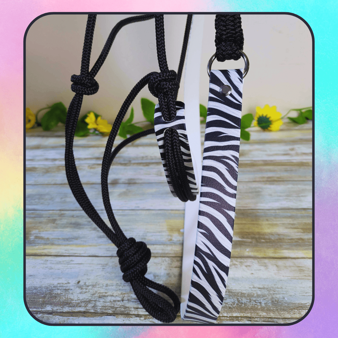 Licol noir avec une muserolle en biothane zébrée et une cordelette bi-matière