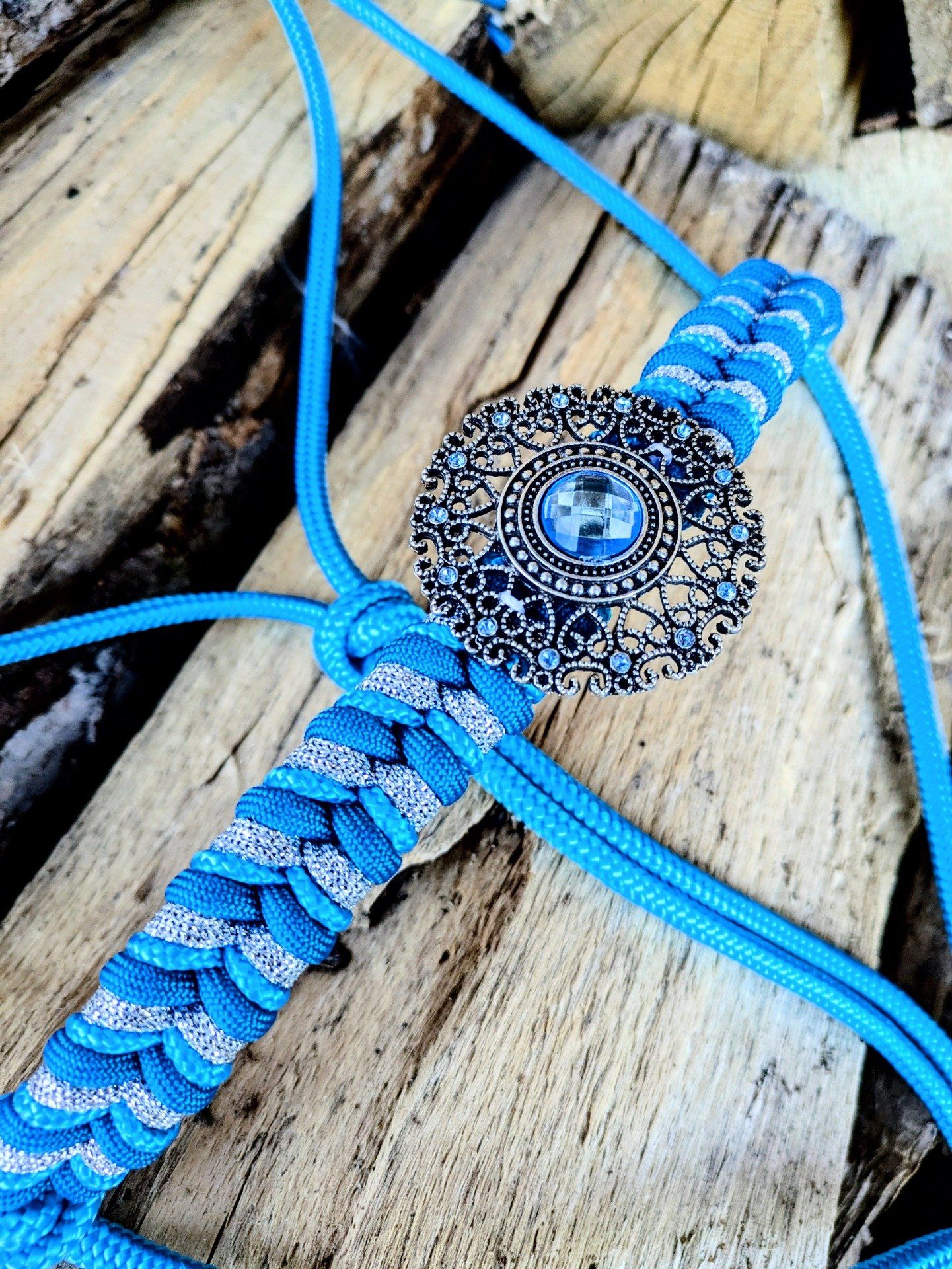 Licol bleu océan avec un tressage, bleu océan, bleu ciel et argenté paillettes