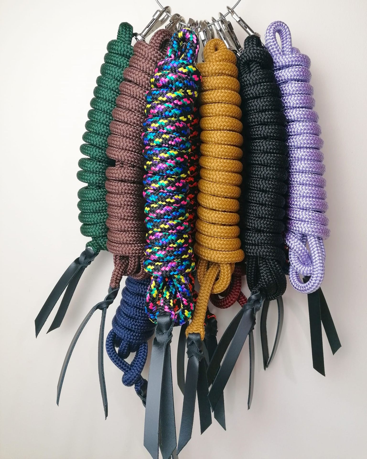 Longe en corde plate 2m50 sans popper, longe de travail en corde ronde avec popper en cuir de 3m70, 5m50 et 7m.